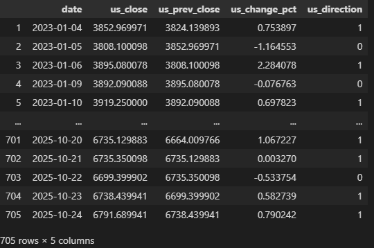us_df['us_direction'] = (us_df['us_change_pct'] > 0).astype(int)