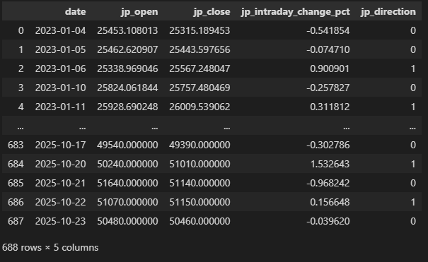 jp_df['jp_direction'] = (jp_df['jp_intraday_change_pct'] > 0).astype(int)