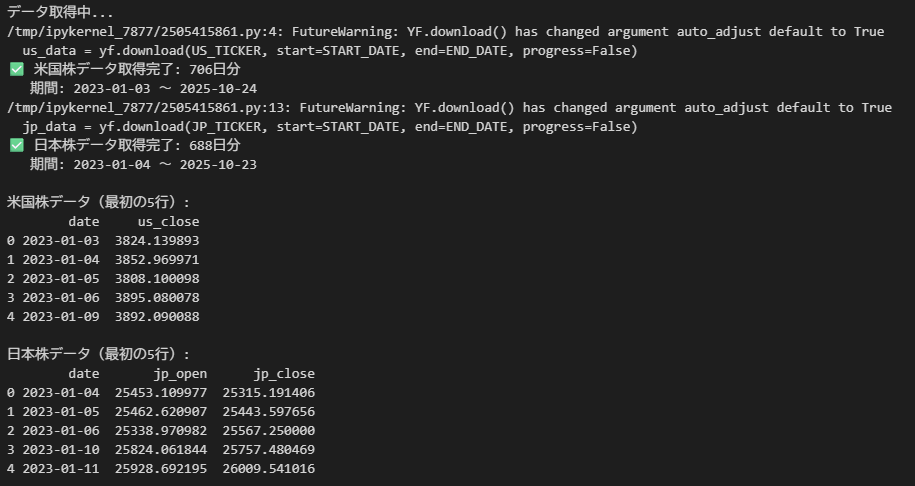 print(f"✅ 日本株データ取得完了: {len(jp_df)}日分")